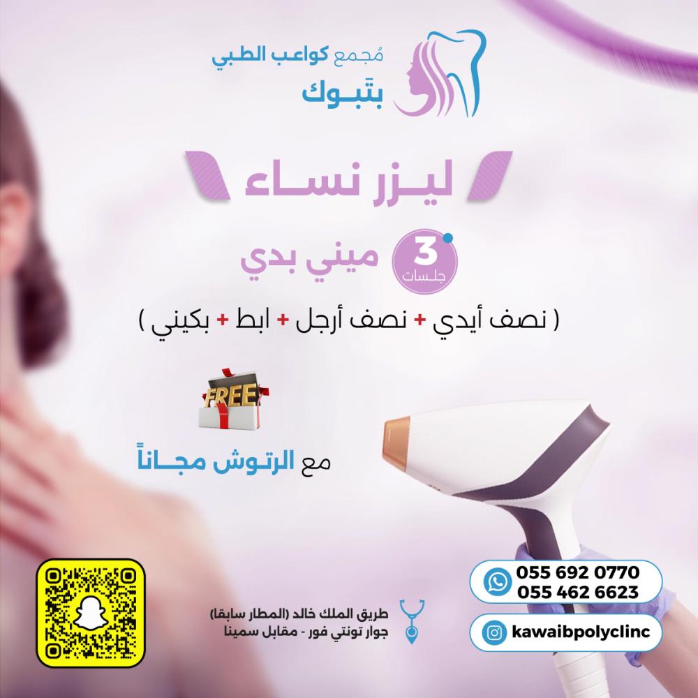 3 جلسات ليزر ميني بدي للنساء ( نصف أيدي - نصف أرجل - إبط - بكيني ) مع الرتوش مجانا.